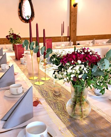 Gerne stehen wir Ihnen beratend zur Seite bei der Organisation Ihres Festes, das mit den variablen Tischformen, festlichem Tischschmuck, dem Festmenü Ihrer Wahl und umfangreicher Getränkeauswahl ein unvergesslicher Tag werden soll.